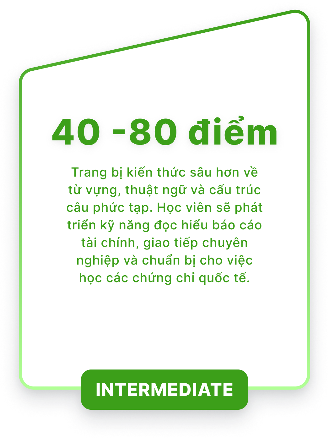 Khóa học Tiếng Anh chuyên ngành Kế toán – Kiểm toán – Tài chính tại BISC được thiết kế bài bản, phục vụ trực tiếp cho việc học và thi các chứng chỉ quốc tế như ACCA, ICAEW, CFA,... hay làm việc tại các môi trường Big4, FDI, MNCs.